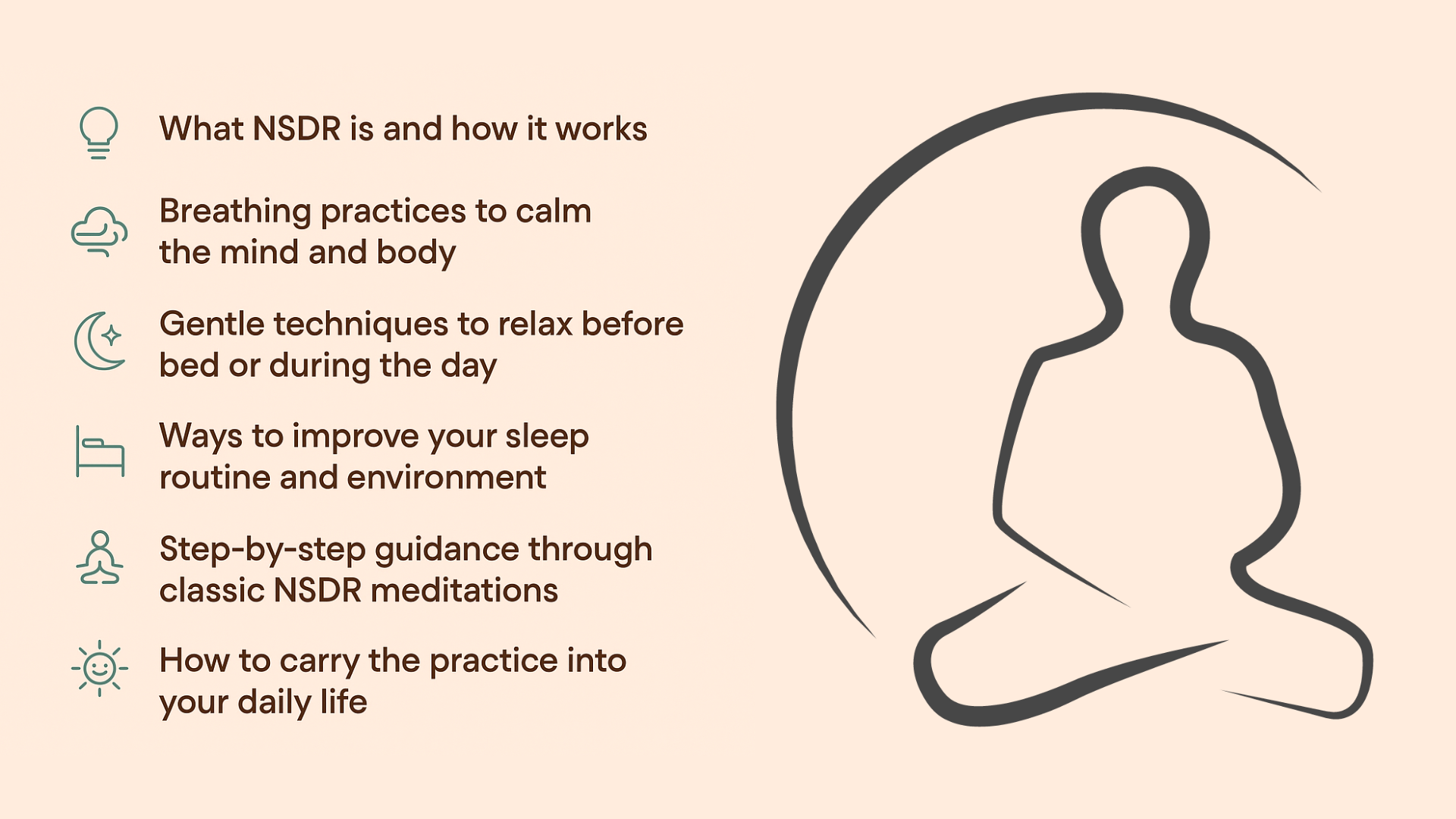 NSDR is a restful state that supports better sleep, but you do not have to fall asleep for it to work. Many people use it to recharge or calm their system throughout the day.